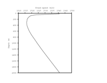 - a plot of the speed of sound in the ocean as a function of depth, where the vertical axis corresponds to the depth and the horizontal axis corresponds to the sound speed. By convention, the horizontal axis is placed at the top of the plot, and the vertical axis is labeled with values which increase from top to bottom, thus reproducing visually the ocean from its surface downward.