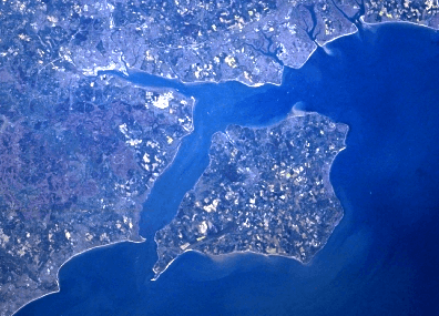 The port is located ten miles (16 km) inland, between the confluence of the rivers Test and Itchen and the head of the mile-wide drowned valley known as Southampton Water. The mouth of the inlet is protected from the effects of foul weather by the mass of the Isle of Wight, which gives the port a sheltered location. Additional advantages include a densely populated hinterland and close proximity to London, and excellent rail and road links to the rest of Britain which bypass the congestion of London.