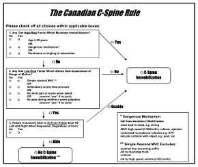 - ↑ Michaleff, ZA; Maher, CG; Verhagen, AP; Rebbeck, T; Lin, CW (6 November 2012). "Accuracy of the Canadian C-spine rule and NEXUS to screen for clinically important cervical spine injury in patients following blunt trauma: a systematic review.". Canadian Medical Association Journal. 184 (16): E867–76. doi:10.1503/cmaj.120675. PMID 23048086.