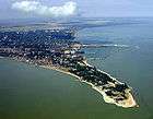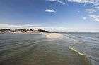 Most spits have triangular base and numerous lagoons on their west side. The ends of some spits are widened and bent westwards. Their shape rapidly varies with time. For example, the Arabat Spit (the largest and most stable spit on the Azov Sea) was formed only around 1100–1200 AD,[4] and some spits were partly or entirely washed away by water currents.[5] Many spits are used as resting ground by migrating birds (mostly ducks, geese, swans, sandpipers, great cormorants and seagulls, see e.g. this and this pictures) and therefore some are declared national nature reserves. Examples are Beglitsk,[6] Belosaraysk,[7] Krivaya[7] and Berdyansk Spits. In addition to bird colonies, Belosaraysk and Berdyansk Spits also host more than 200 vegetation species each.[8][9][10] Berdyansk Spits is remarkable by having one of the oldest lighthouses on the Azov Sea (160 years old).[11] Petrushin Spit is historical in that in 1697, Peter I built a major fortress at its base.[12] In July 1711, a Turkish landing operation was defeated there.[13]