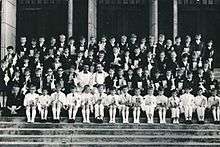 Conventual Franciscans operated a monastery in Gdańsk until the mid-16th century, when it was taken over by Protestant-dominated municipal authorities; the order kept claiming the building by appointing titular guardians later on.[28] Following unsuccessful attempts to recover the monastery from the Free City of Danzig in the 1920s, in the early 1930s the local Provincial Superior Anzelm Kubit launched search for an alternative location, focusing on the rapidly growing Gdynia; he obtained appropriate permission from the Culm bishop, Stanisław Okoniewski.[29] Despite initial plans centred on the village of Orłowo,[30] in 1935 he purchased a plot of 7,3 thousand square meters[31] on Northern slopes of a largely uninhabited hill towering over the city centre from the South.[32] In 1936 the Minister General, Domenico Tavani, formally set up a convent.[33] Architectural design envisioned a monastery and a large adjacent chapel; construction works, carried out with enormous financial, technical and manpower assistance of other Franciscan monasteries, especially from Niepokalanów and Łagiewniki,[34] were completed in 1937.[35] During the next few years the convent grew to 10 friars.[36] In 1937 the chapel became a garrison church for 2. Morski Batalion Strzelców, and the guardian became its chaplain.[37]