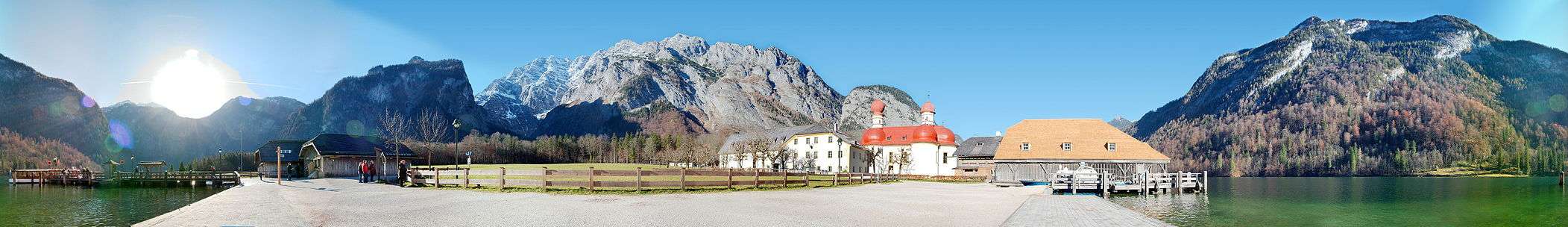 St. Bartholomew's (German: St. Bartholomä) is a Roman Catholic pilgrimage church in the Berchtesgadener Land district of Bavaria in Germany. It is named after Saint Bartholomew the Apostle (Bartholomäus in German), patron of alpine farmers and dairymen. The church is located at the western shore of the Königssee lake, on the Hirschau peninsula. It can only be reached by ship or after a long hike across the surrounding mountains.