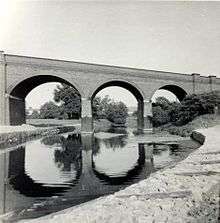 Built as part of the Great Central Railway's London Extension opened in 1899, it carried the Great Central Main Line over the River Soar and a road (Meadow Lane). It was built by the contractor Henry Lovatt of Wolverhampton,[1] out of blue brick. The three central arches are skewed to allow the Soar to pass underneath.
