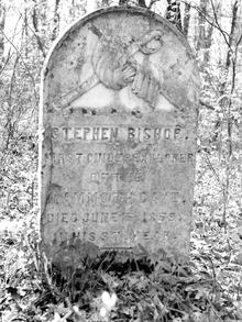Bishop was buried on the south hill above the cave in what became known as "The Old Guides' Cemetery." According to Mammoth Cave Historian Harold Meloy ("Stephen Bishop: The Man and the Legend", in Caves, Cavers, and Caving, Bruce Sloane, Editor, 1977, pp 290–291), James Ross Mellon, president of the City Deposit Bank, Pittsburgh, PA, visited the cave for one week in November 1878. He heard charming stories of Bishop, and he met Charlotte, who then managed the hotel dining room. She led him to Stephen's gravesite, "which had only a cedar tree to mark it." Mellon promised to have a headstone carved for Stephen's grave. Three years after Mellon returned home to Pittsburgh he remembered his promise to Charlotte. He arranged for a monument carver to prepare the stone. In 1881 a stonemason used a second-hand tombstone that a Civil War soldier's family had not paid for, he chiseled off the original name and placed an inscription that read,