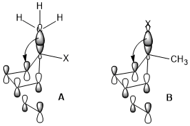 Take the simplest CH2X–CH3 system as an example; the donor orbital is σ(C–H) orbital and the acceptor is σ*(C–X). When moving from fluorine to chlorine, then to bromine, the electronegativity of the halogen and the energy level of the σ*(C–X) orbitals decreases.[3] Consequently, the general trend of acceptors can be summarized as: π*(C=O)>σ*(C–Hal)>σ*(C–O)>σ*(C–N)>σ*(C–C), σ*(C–H). For donating orbitals, the nonbonding orbitals, or the lone pairs, are generally more effective than bonding orbitals due to the high energy levels. Also, different from acceptors, donor orbitals require less polarized bonds. Thus, the general trends for donor orbitals would be: n(N)>n(O)>σ(C–C), σ(C–H)>σ(C–N)>σ(C–O)>σ(C–S)>σ(C–Hal).[4]