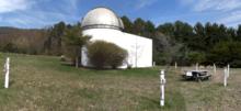 The observatory has one 16-foot-diameter (4.9 m) silo-type room housing a 14-inch Celestron Compustar telescope owned by James Madison University under a powered Ash observatory dome. An adjoining shaped room houses astronomy displays and materials used for instructional classes. The building is surrounded by a circle of 8 powered piers for mounting additional telescopes.