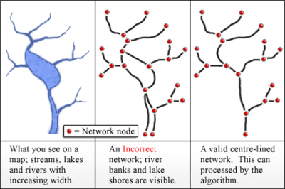 Comparison of incorrect and correct conversion of water bodies to a tree network