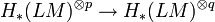 as an inclusion of Hilbert manifolds). Another approach starts with the collapse map from LM x LM to the Thom space of the normal bundle of Map(8, M). Composing the induced map in homology with the Thom isomorphism, we get the map we want.