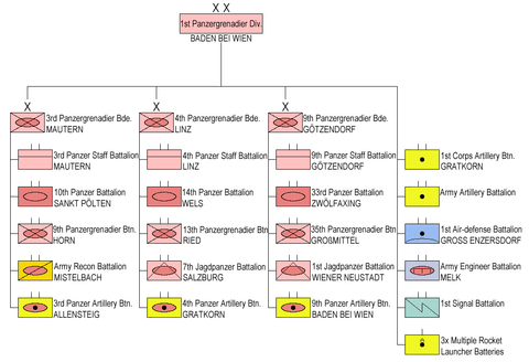 - 1st Panzergrenadier (Mechanized) Division in Baden bei Wien, operating as mobile force in Lower Austria