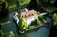 The small water castle Kleinbardorf from a balloon