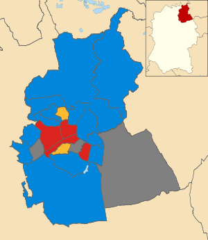 The Conservatives retained their majority in the election, just losing one seat to have 41 councillors.[2][3] The Conservative defeat came in Parks ward with Labour gaining the seat, while the only other change came in Penhill where the Liberal Democrats gained a previously independent seat.[3][4] Among the Conservatives to retain a seat was the leader of the council, Roderick Bluh, who held Dorcan by a reduced majority of 460.[2] After the election the other parties on the council were Labour with 13 seats, Liberal Democrats 4 and 1 independent.[2]