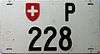 Swiss car number plates consist of a two letter code for the canton followed by up to 6 numerical digits. The rear plates also contain small shields representing the flags of Switzerland and the canton. For official vehicles, the two letter code is replaced by a one letter code, A, P or M, meaning respectively Federal Administration, Public Authorities (such as Railroads) or Postal Service, and Military. The front numberplate is a smaller version with the same code as the rear.