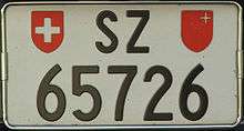 Car number plate 2line format of the Canton of Schwyz (SZ) (Rear plate)