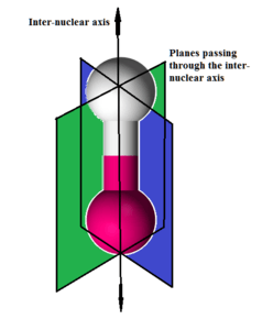 There are typically two symmetry groups associated with diatomic molecules: and , both of them belonging to the Curie groups.[notes 1]