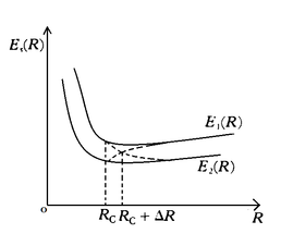 Let and two different electronic potential curves. If they intersect at some point, then the functions and will have neighbouring values near this point. To decide whether such an intersection can occur, it is convenient to put the problem as follows. Suppose at some internuclear distance the values and are close, but distinct (as shown in the figure). Then it is to be examined whether or and can be made to intersect by the modification . The energies and are eigenvalues of the Hamiltonian . The corresponding orthonormal electronic eigenstates will be denoted by and and are assumed to be real. The Hamiltonian now becomes , where is the small perturbation operator (though it is a degenerate case, so ordinary method of perturbation won't work). setting , it can be deduced that in order for and to be equal at the point the following two conditions are required to be fulfilled: