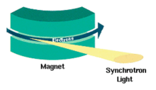 The electromagnetic radiation emitted when charged particles are accelerated radially (a ⊥ v) is called synchrotron radiation. It is produced, for example, in synchrotrons using bending magnets, undulators and/or wigglers. It is similar to cyclotron radiation except that synchrotron radiation is generated by the acceleration of ultrarelativistic charged particles through magnetic fields. Synchrotron radiation may be achieved artificially in synchrotrons or storage rings, or naturally by fast electrons moving through magnetic fields. The radiation produced in this way has a characteristic polarization and the frequencies generated can range over the entire electromagnetic spectrum.