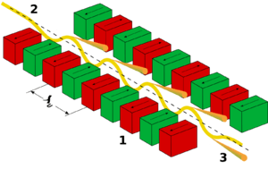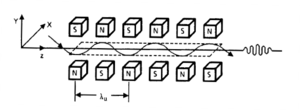 An undulator consists of a periodic array of magnets, so that they provide a sinusoidal magnetic field.