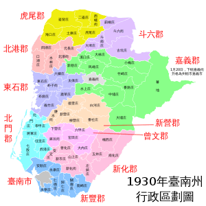 Administrative divisions of Tainan Prefecture (1930).