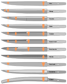 - Shobu: A common blade type that is very similar to the shinogi zukuri, except that it lacks a yokote, the distinct angle between the long cutting edge and the point section, and instead the edge curves smoothly and uninterrupted into the point.