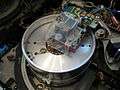 Inside a D6 HDTV VTR Tape Deck, VTR Scanner and video head in place.