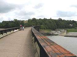 The Tarka Trail was established in 1987 as the Taw/Torridge Country Park using the disused railway line between Barnstaple and Bideford.[4] The railway line was purchased for £515,000 in 1986-87 from British Rail.[4] In 1989, the remainder of the line between Bideford and Meeth was acquired in its entirety by Devon County Council for £1.[4] Conversion of this section to a footpath was enabled by a £60,000 Derelict Land Grant from central government in 1989-90, plus a further £100,000 from Devon County Council and the Countryside Commission in 1990-91.[4] A large proportion of the money was needed to adapt and repair bridges across the River Torridge.[4]