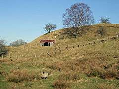 A licence to crenellate was granted to John Comyn in 1267, and the castle was built half a mile south-west of the present village of Tarset.[1] The castle, which had four square corner turrets, was destroyed by the Scots shortly after the Battle of Bannockburn in June 1314.[1] All that remains now is some stone foundations on top of a mound.[2]