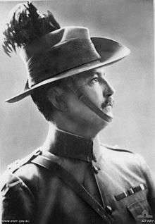 The New South Wales School of Gunnery was established at Middle Head in 1885,[97] while full volunteers were instituted again that year.[106] At this time it was decided to raise a volunteer corps of cavalry who although they were required to supply their own horses, were to also be partially paid, and had uniforms and weapons supplied. They were eventually formed as a light horse unit and were known as the New South Wales Lancers.[107] Another unit to be raised at this time was the Upper Clarence Light Horse, which had initially been raised by its colonel, Sir Charles Chauvel, father of Harry Chauvel, with the intention of being sent to India if the Russians became involved in Afghanistan; the offer was later rejected, however, when the men were attested they swore to volunteer for overseas service.[108] Previous mounted rifles were merged with the Lancers. A further four batteries of reserve artillery were raised in 1885, but disbanded in 1892. The permanent forces also added units of submarine miners and mounted infantry, which were also soon disbanded.[109]