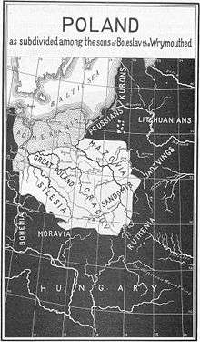 The last will and testament of the Piast duke Bolesław III Wrymouth of Poland,[1] established rules for governance of the Polish kingdom by his four surviving sons after his death. By issuing it, Bolesław planned to guarantee that his heirs would not fight among themselves, and would preserve the unity of his lands under the House of Piast. However, he failed; soon after his death his sons fought each other, and Poland entered a period of fragmentation lasting about 200 years.[2]