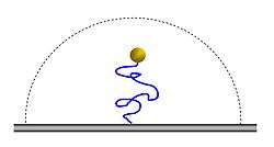 One end of a polymer is attached to a small bead (tens to hundreds of nanometer), while the other end is attached to a surface. Both the polymer and the bead stay in an aqueous environment, so the bead moves in Brownian motion. Because of the tether, the motion is restricted. Using an optical microscope and CCD camera, one can track the bead position in a time series. Although the bead is usually smaller than the diffraction limit, so the image is a spot which is larger than the bead itself (point spread function), the center of the spot represents the projection on the X-Y plane of the end of the polymer (end-to-end vector). Analyzing the distribution of the bead position can tell us a lot of information about the polymer.