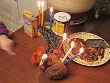 - 1 2 Vicki Hyman (October 14, 2013). "Thanksgivukkah: New traditions for a Thanksgiving nosh". The Star-Ledger. Retrieved October 14, 2013.
