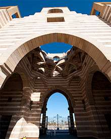 AUC was originally established in Tahrir Square in downtown Cairo. The 7.8-acre Tahrir Square campus was developed around the Khairy Pasha Palace. Built in the neo-Mamluk style, the palace inspired an architectural style that has been replicated throughout Cairo.[10] Ewart Hall was established in 1928, named for William Dana Ewart, the father of an American visitor to the campus, who made a gift of $100,000 towards the cost of construction on the condition that she remain anonymous.[11] The structure was designed by A. St. John Diament, abutting the south side of the Palace. The central portion of the building houses an auditorium large enough to seat 1,200, as well as classrooms, offices and exhibition galleries. The school’s continued growth required additional space, and in 1932, a new building was dedicated to house the School of Oriental Studies. East of Ewart Hall, the building featured Oriental Hall, an auditorium and reception room built and decorated in an adaptation of traditional styles,[12] yet responsive to the architectural style of its own time.[10]