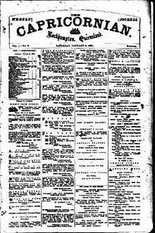 - 1 2 "Capricornian (1875-1929)". Catalogue. State Library of Queensland. Retrieved 28 November 2013.