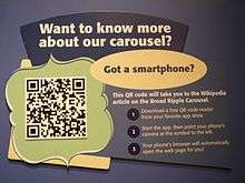 Label using a QRpedia code to direct visitors to the Wikipedia article Broad Ripple Park Carousel.