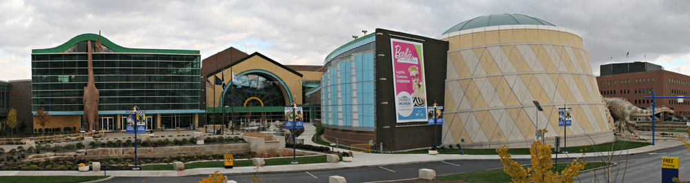 In 1996 a 310-seat large-format theater called the CineDome was constructed adjacent to the museum. In 2004 the museum added a 950-space parking garage and the CineDome was converted to Dinosphere, which is built within and around the former CineDome. The Welcome Center was expanded again in 2009 increasing the total size of the museum to 472,900 square feet (43,930 m2).[7]