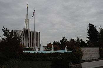The first branch in Washington was created at Tacoma near the end of 1899, with its first stake being created at Seattle in 1938.[5] Washington's first temple was built in Bellevue in 1980. There are now also temples in Spokane and Richland.[6]