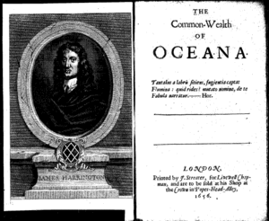 The Commonwealth of Oceana, published 1656, is a composition of political philosophy written by the English politician and essayist, James Harrington (1611–1677). The unsuccessful first attempt to publish Oceana was officially censored by Lord Protector Oliver Cromwell (1599–1658). It was eventually published, with a dedication to Cromwell.[1]