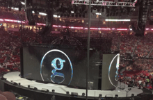 During the second concert of the tour in Rosemont, Illinois on September 5, 2014, Kelly Clarkson made a surprise appearance to perform the duet "PrizeFighter", alongside Yearwood (Brooks normally sings Clarkson's verses).[54] Clarkson also made an appearance and sang the duet once again at the concert in Atlanta on September 19, 2014.[53] Brooks made national headlines in November 2014 after noting a fan's sign at a concert in Minneapolis. The sign, reading "Chemo this morning. Garth tonight. Enjoying the dance.", caught Brooks' attention during his performance of "The Dance". After getting emotional, Brooks expressed his support.[55] Later that same month, Brooks performed "People Loving People" on the American Music Awards of 2014 live via satellite from the concert in Greensboro, North Carolina.[56] On the second to last concert of Brooks' six-night residency in Boston on January 25, 2015, Lee Brice joined him on stage and the two performed "More Than a Memory".[57] Brice also opened for Brooks during his first show in Bossier City on July 29, 2016 and again performed the duet during Brooks' set.