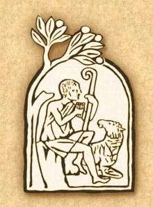 - ↑ "The figure (...) is an allegory of Christ as the shepherd" Andre Grabard, "Christian iconography, a study of its origins", ISBN 0-691-01830-8