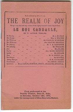 The Realm of Joy is a one-act farce by W. S. Gilbert, writing under the pseudonym "F. Latour Tomline". It opened at the Royalty Theatre on 18 October 1873, running for about 113 performances, until 27 February 1874.[1][2]