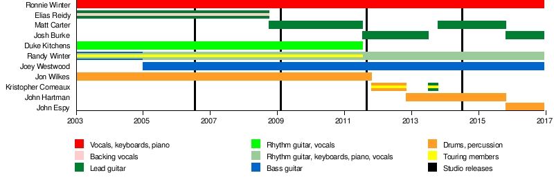 • Randy Winter - rhythm guitar, keyboards, vocals (full-time 2011–present; touring 2003-2011)