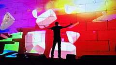 The initial projections shown during "Goodbye Blue Sky" caused some controversy. During the song, aeroplanes are shown dropping bombs shaped like Latin crosses, hammer and sickles, dollar signs, star and crescents, Stars of David, the Shell logo, and the Mercedes-Benz logo, with the addition of the McDonald's logo in later shows. The plane dropping dollar signs appeared directly after the plane dropping the Star of David. Although Waters said in Rolling Stone that there was no relevance to the order of the bombs, he changed the order after Abraham Foxman, president of the Anti-Defamation League, complained.[23] Waters stated, "Contrary to Mr Foxman's assertion, there are no hidden meanings in the order or juxtaposition of these symbols."[24] These visuals were changed at Waters' request for all future shows, to avoid any sensitive juxtapositions of the symbols used in the video. At the first show of the tour, while these symbols dropped from the plane they also dropped from the ceiling of the Air Canada Centre in little cut-out shapes of confetti that looked like the symbols from the plane. During the song "Don't Leave Me Now" the production features a giant wife puppet similar in design and execution as the Schoolmaster. During the first half on the show, the wall is slowly built up brick by brick and as with the eighties tour, an instrumental called "The Last Few Bricks" that doesn't appear on the original album is played to give the stage hands extra time to build the wall. At the end of "Goodbye Cruel World", the last brick is put in place and the wall is completed across the stage. An intermission follows with photos and short bios of people lost in conflicts are projected on the wall.
