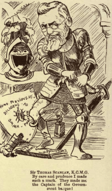 Scanlen was not an outstanding politician. He had a good legal brain, was a conscientious worker and a good back bencher, but he was neither a good orator nor a leader. It was his misfortune that, in assuming the Premiership, he also inherited Sprigg's legacy of intractable problems. In private life, Scanlen was modest and retiring. He was a difficult conversationalist, having virtually no small talk, but he possessed a dry sense of humour and was a shrewd judge of character.[9]
