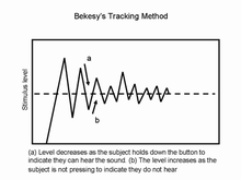 Bekesy's method contains some aspects of classical methods and staircase methods. The level of the stimulus is automatically varied at a fixed rate. The subject is asked to press a button when the stimulus is detectable.