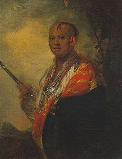 Arriving in early June, the Cherokee were an immediate attraction, drawing crowds all over the city. The poet, Oliver Goldsmith, waited for three hours to meet the Indians, and offered a gift to Ostenaco.[13] They sat for Sir Joshua Reynolds to paint their portraits,[14] and they met personally with King George III. The Cherokee returned to North America with Sergeant Sumter on about August 25, 1762.[15] Timberlake remained behind in England.