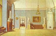 Count Feodor Petrovich Tolstoy (1783–1873), sympathetically mentioned by Pushkin in Eugene Onegin, was one of the most fashionable Russian drawers and painters of the 1820s. Although he prepared fine illustrations for Bogdanovich's Dushenka, his genuine vocation was wax modeling and design of medals. As he gradually went blind he had to give up drawing and started writing ballets and librettos for operas. He was appointed Vice-President of the Academy of Arts in 1828. Many of his works may be seen in the Russian Museum, St Petersburg.