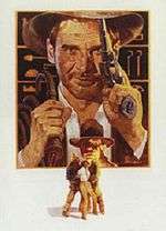 In 1981 Jung was contacted by Sid Ganis, vice president of marketing at Lucasfilm, to develop concept sketches for Raiders of the Lost Ark. At the same time the production company, Paramount Pictures along with advertising agency Diener/Hauser/Bates, were working with another illustrator, Richard Amsel, to also develop a marketing campaign. Jung created sixteen concept sketches for the one-sheet, one of which was approved to go to color.[14] Borrowing from his original Papillon artwork, Jung used a "brown sauce" palette and a unique concept to create the iconic character Indiana Jones for his interpretation of the movies Key Art.[14]
