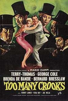 Too Many Crooks is a 1959 British comedy film about a bunch of inept crooks who kidnap the wrong woman. It stars George Cole as the leader of the gang, Brenda De Banzie as the victim, and Terry-Thomas as her husband. Sid James is another gang member.