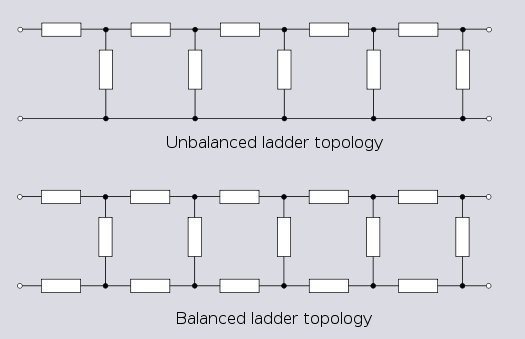 Infinite topologies can also be formed by cascading multiple sections of some other simple topology, such as lattice or bridge-T sections. Such infinite chains of lattice sections occur in the theoretical analysis and artificial simulation of transmission lines, but are rarely used as a practical circuit implementation.[10]