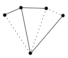 - ↑ Distance between trees is defined as the number of edges that are in one tree but not in the other. That is, it is the number of edges which must be changed in order to transform one tree into the other (Kishi and Kajitani, p.323).