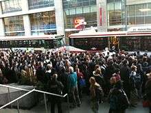 After being forced to make the information public the TTC ensured that it also released information demonstrating the efforts being taken to intervene and prevent such incidents in the future.[31] The TTC's "Gatekeeper Program" is an internal course available for front line staff to learn and identify the warning signs of someone who may be suicidal, and help them or try to prevent them from doing so on the transit system. The TTC also has partnerships with St. Michael's Hospital and other institutions to assist with both prevention programs and counselling programs for staff who have witnessed such incidents.[32] The TTC maintains that it will continue its policy of not reporting suicides and suicide-related statistics,[29] however in February 2010, statistics from 2008 and 2009 were released in a public report to the Commission regarding suicide and suicide prevention.[33] On November 10, 2014, separate suicide attempts were made, halting service on two lines. Following this, platform screen doors were discussed, however the TTC does not yet have a plan for funding the $800 million required to upgrade all 74 subway stations.[34]